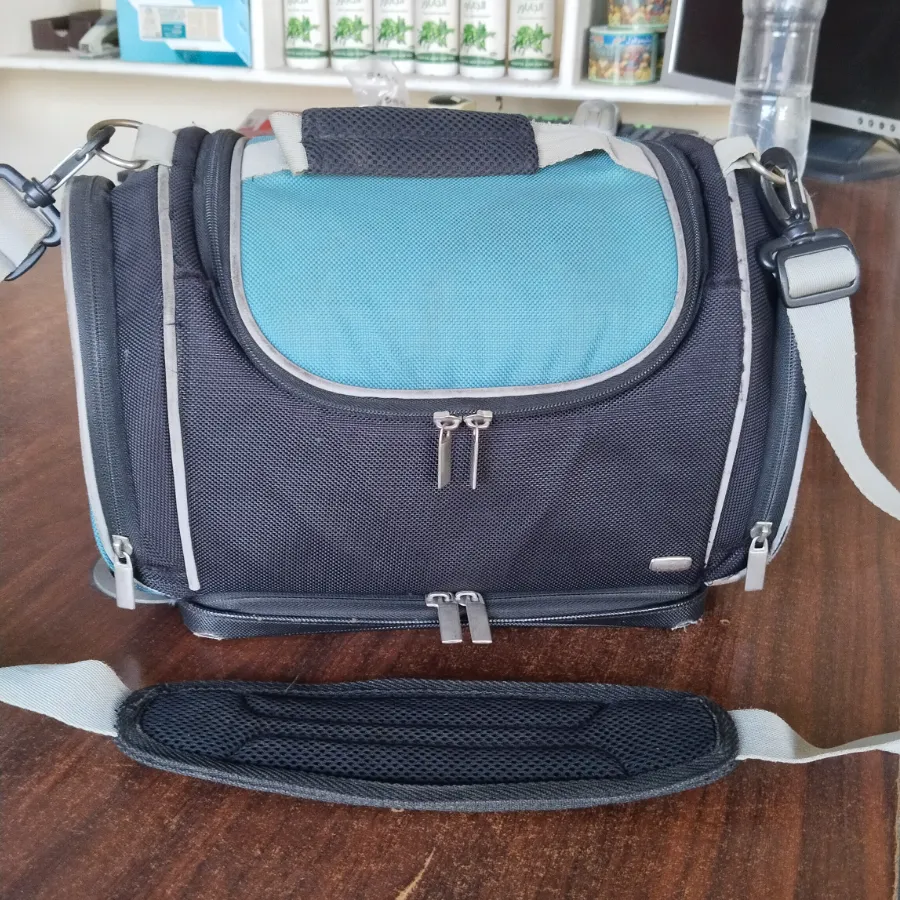 3عدسات وفلاش والشواحن خامه جميله جدا بتتغسل وفيها جيوب صغيره كتير لكروت الميموري بها جيب سحري مخفي شنطه كبيره الشنطه كولتي متينه جدا