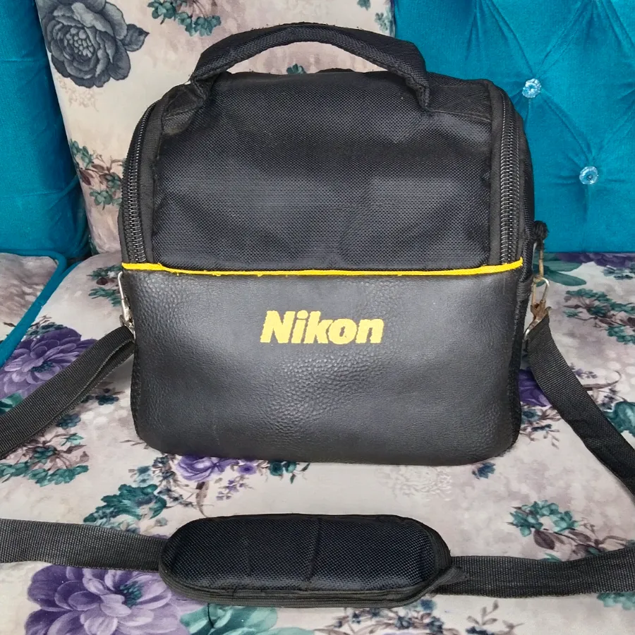 شنطه نيكون واسط شعبي بتشيل كاميرا و2عدسه وفلاش والشواحن خامه كويسه مش بتتغسل للاسف فيها جيوب كتير وجيوب لكروت الميموري