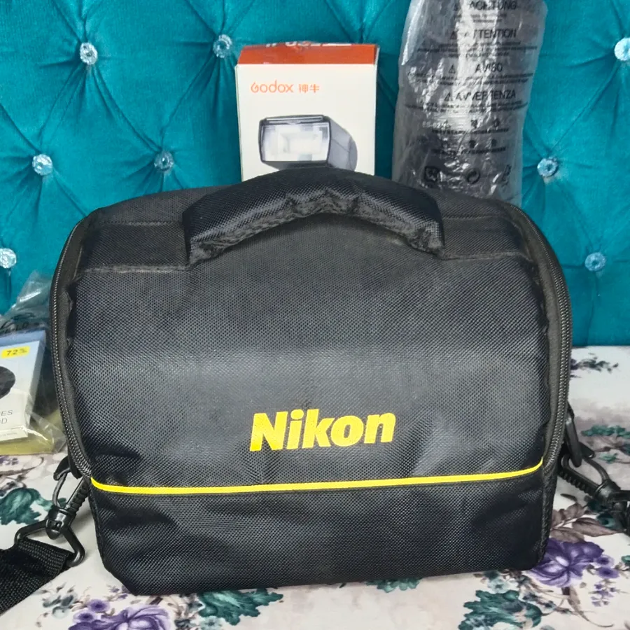 شنطه كانون واسط بتشيل كاميرا و2عدسه وفلاش والشواحن خامه جميله جدا بتتغسل وفيها جيوب صغيره كتير لكروت الميموري للتواصل