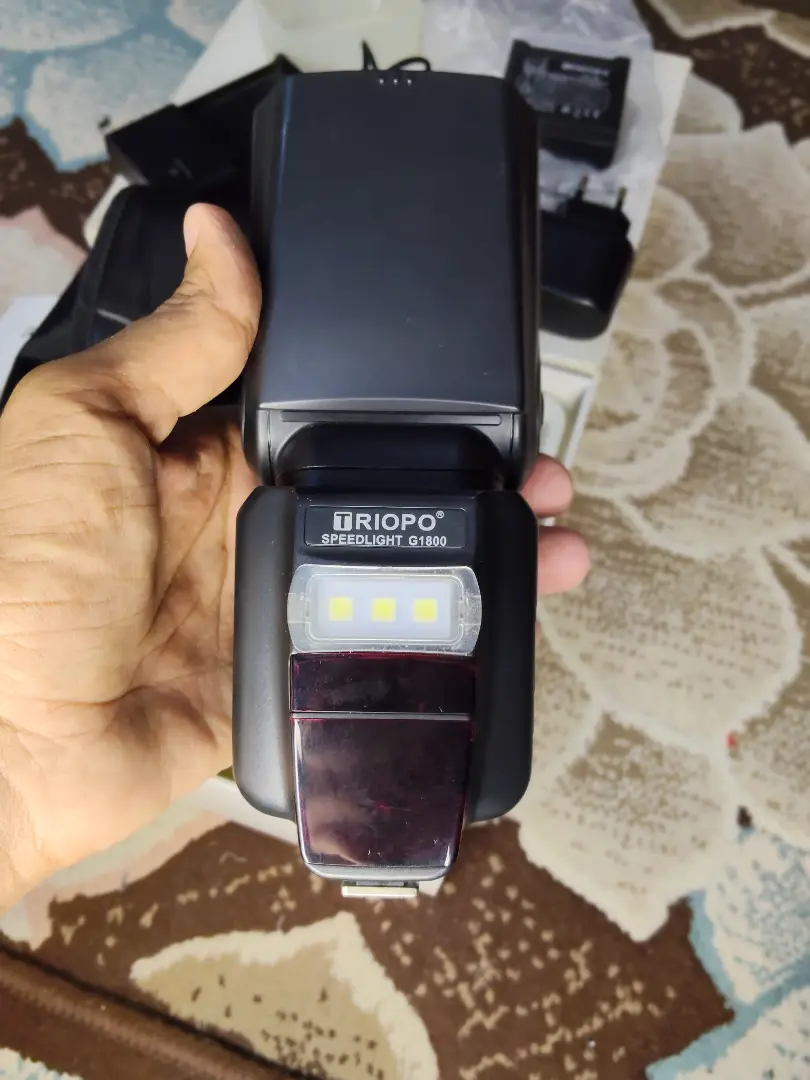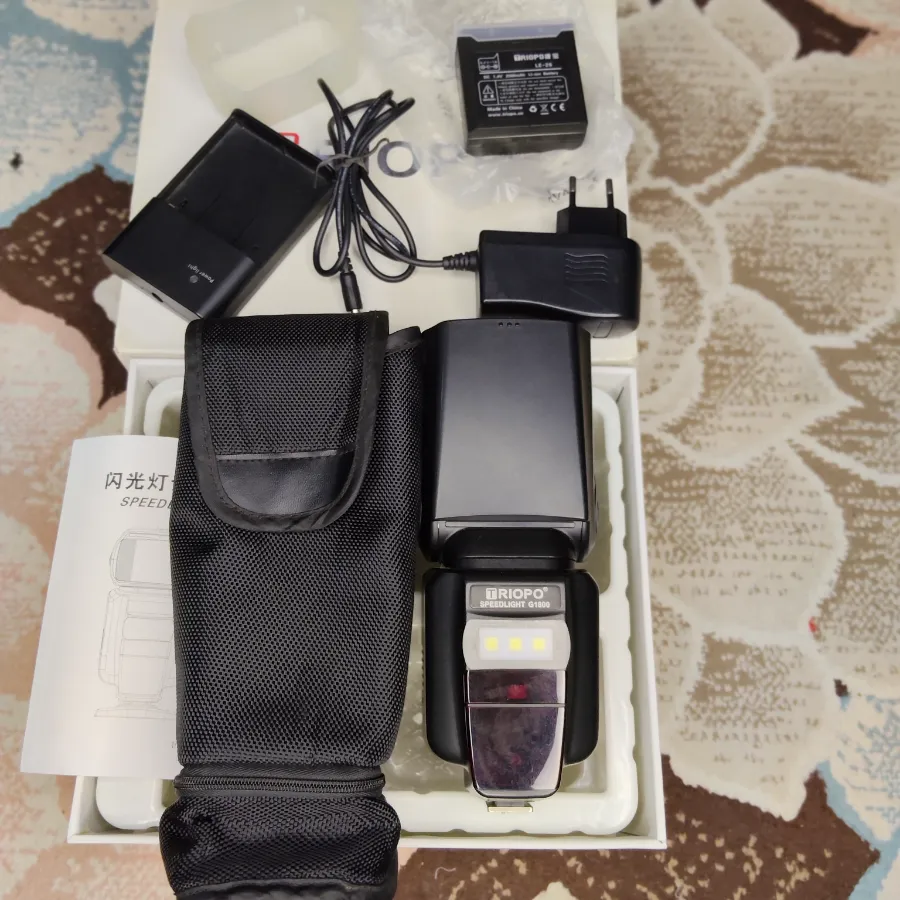 فلاش تريوبو G-1800 PEEDLIGHT G1800 TRIOPO كسر زيرو بكل مشتملتها الكرتونه البطاريه الشاحن كبل الشاحن الدفيوزر الجراب الكتلوج الفلاش جميل جدا اضائه قويه في مميزات جميله جدا اكتر من 8مميزان للتواصل واتساب او فون 0️⃣1️⃣0️⃣9️⃣5️⃣1️⃣9️⃣0️⃣2️⃣0️⃣8️⃣