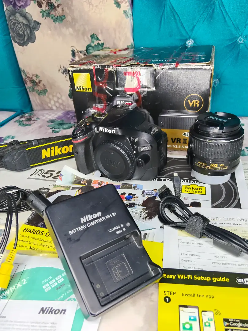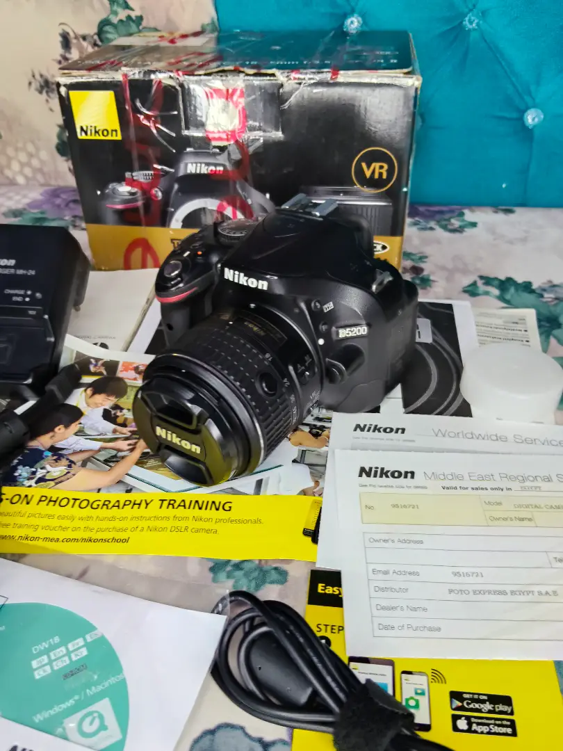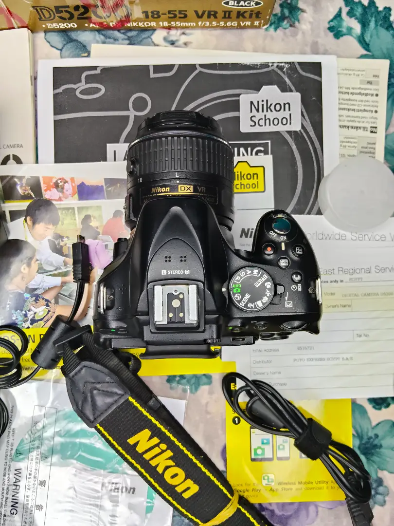 كاميرا نيكون D5200 كسر زيرو بلمعت بلدها بكل مشتملتها الكرتونه الكتلوجات والاسطوانه والضمان عدسه 18.55 فرجن3 كبل الكمبيوتر و الشاحن والحزام والبطاريه وكبل ال HD شاتر 17k الكميرا تصوير 24 ميجا بكسل واتساب او فون 0️⃣1️⃣0️⃣9️⃣5️⃣1️⃣9️⃣0️⃣2️⃣0️⃣8️⃣