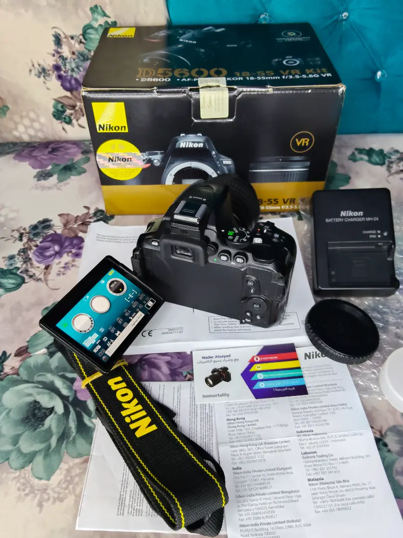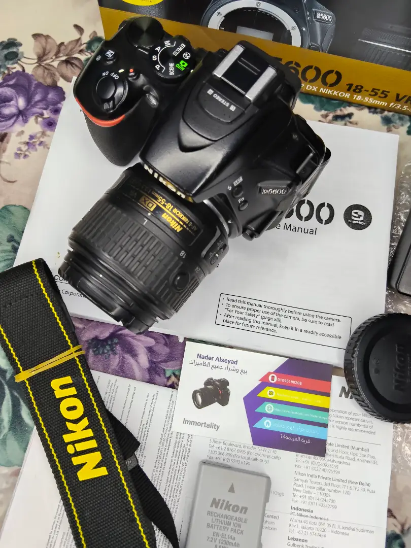كاميرا نيكون D5600 كسر زيرو بكل مشتملتها كرتونه شاحن حزام بطاريه كتلوج عدسه 18.55 فرچن 3 اخر اصدار شاشه متحركه تشتغل تطش بها واي فاي خصية NFC و بلتوث غنيه عن التعريف للتواصل واتساب او فون 0️⃣1️⃣0️⃣9️⃣5️⃣1️⃣9️⃣0️⃣2️⃣0️⃣8️⃣