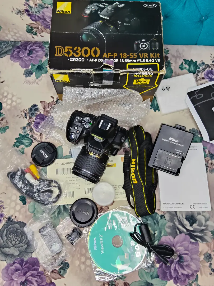 كاميرا نيكون D5300 كسر كسر زيرو بكل مشتملتها بكيسها وكل حاجه تصوير 24 ميجا بكسل شاشه متحركه واي فاي المشتملات