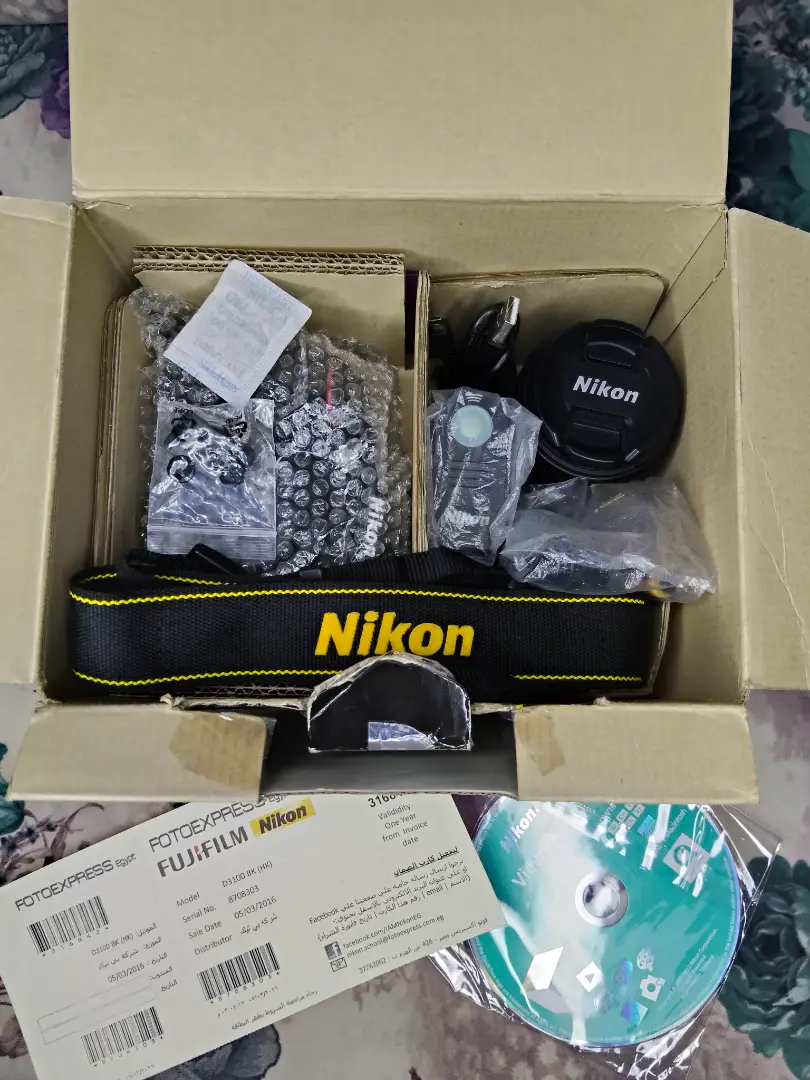الكرتونه / الشاحن / البطاريه / الكتلوجات والحزام / الاسطوانه و الريموت / الحزام / كلب الكمبيوتر وكبل ال HD / العدسه 18.55 فرجن 2 الاصليه بتعتها معاها الكاب الامامي والكاب الخلفي شاتر الكاميرا 5k زيرو حرفيا حاله نضيفهوجدا جدا