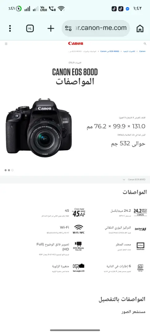 كاميرا كانون 800D كسر زيرو بكل مشتملتها معاها البطاريه الشاحن الحزام عدسه 18.55 فرجن3 ستبليزر الكاميرا شاتر 6k تصوير 24ميجا بكسل شاشه متحركه تطش واي فاي NFC المواصفات الكامله في الصور للتواصل واتساب او فون